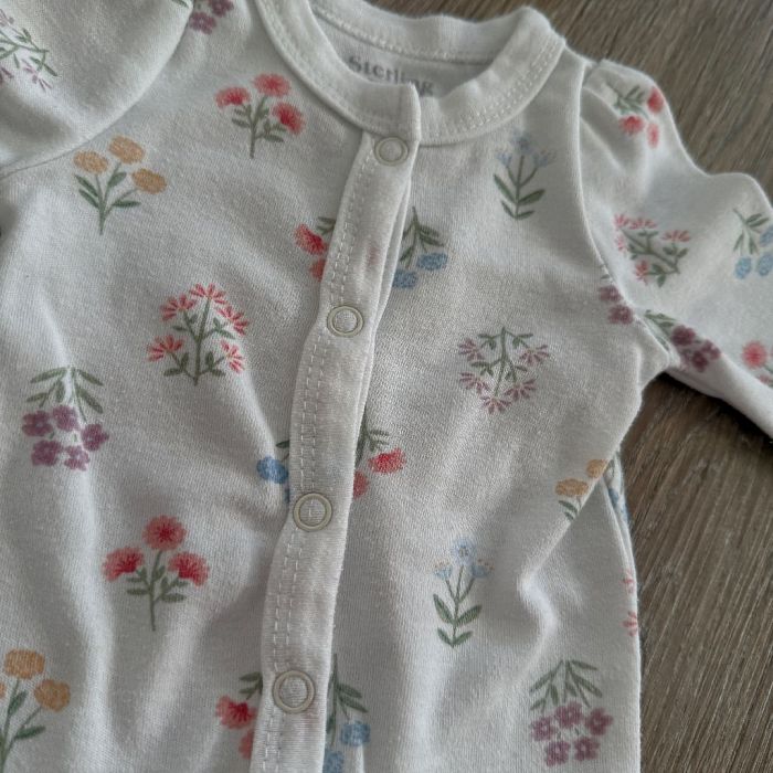 Baby Strampler Set mit Mütze weiß Blumenmustern