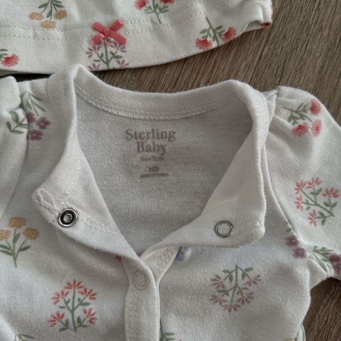Baby Strampler Set mit Mütze weiß Blumenmustern