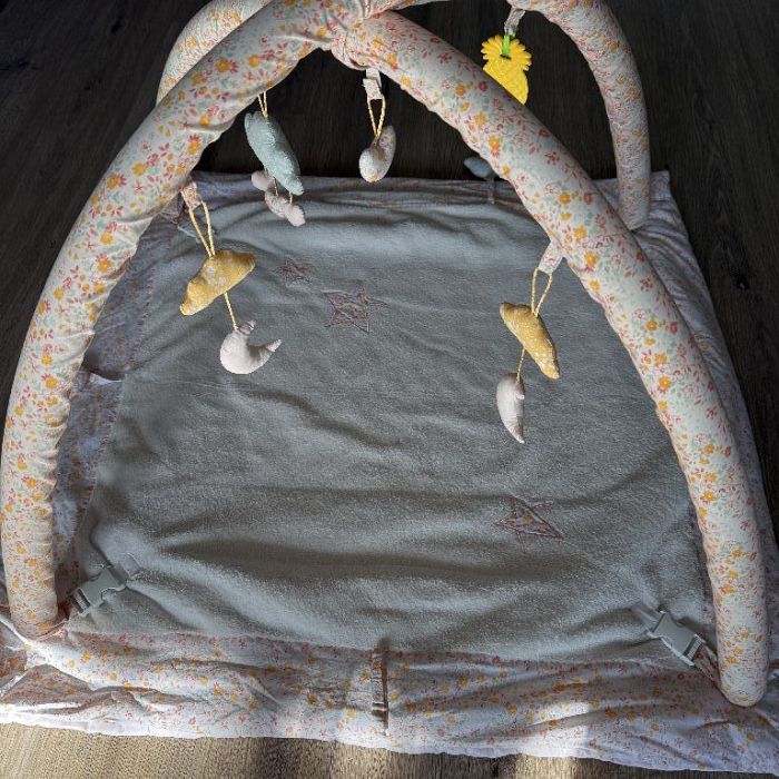 Der Spielbogen lässt sich einfach aufbauen und bietet stundenlangen Spielspaß für die Kleinen. Er befindet sich in gutem gebrauchtem Zustand mit normalen Gebrauchsspuren.