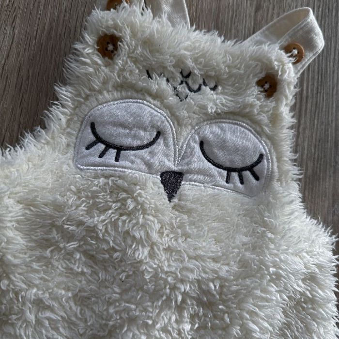 • Süße Eulen-Optik mit geschlossenen Augen und Ohren